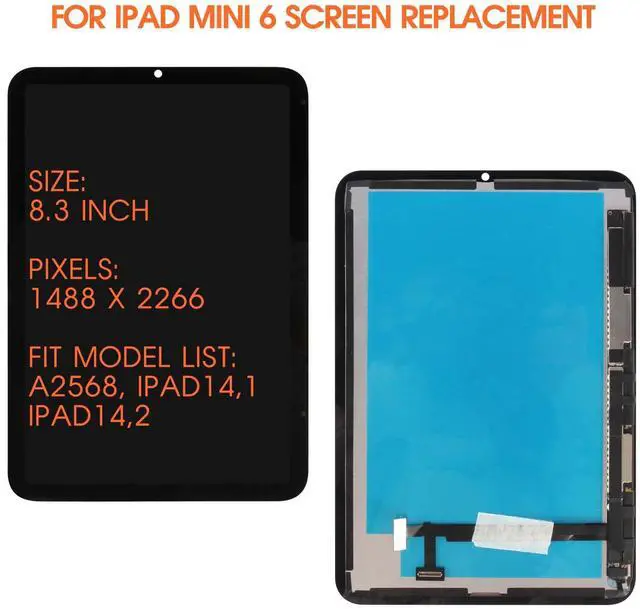 [(Application)] Used to replace the defective LCD display for ipad mini 6 lcd display replacement. Examples include incorrect screen response, display issues, pixel distortion, cracked LCD screen, wrong colors, old or frozen LCD.