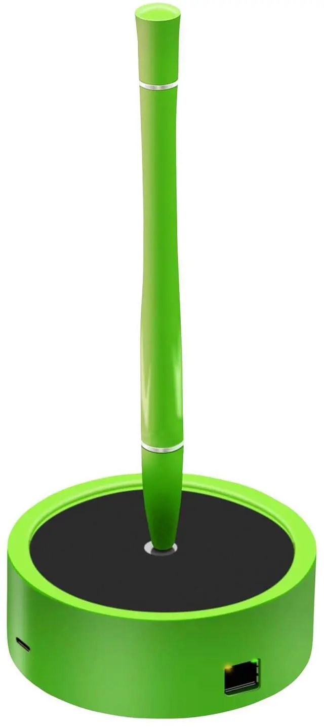 The levitating pen base features 4 port, 2*USB-C ports, 1*USB-A 3.0 ports, 1*1000Mbps Ethernet port, expanding your laptop's capabilities simply.