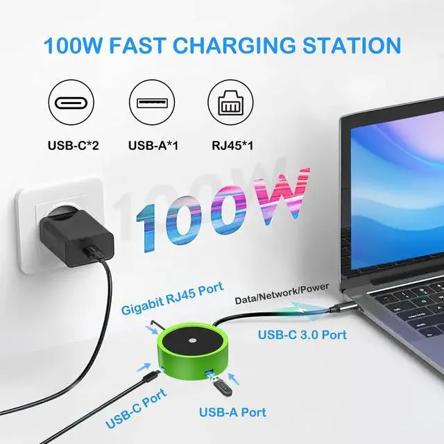[ 4-port Integrated Design ] The Magnetic floating pen base has 4 ports, 2 USB-C ports, 1 USB-A 3.0 port and 1 1000Mbps Ethernet port, which can easily expand the functions of your laptop