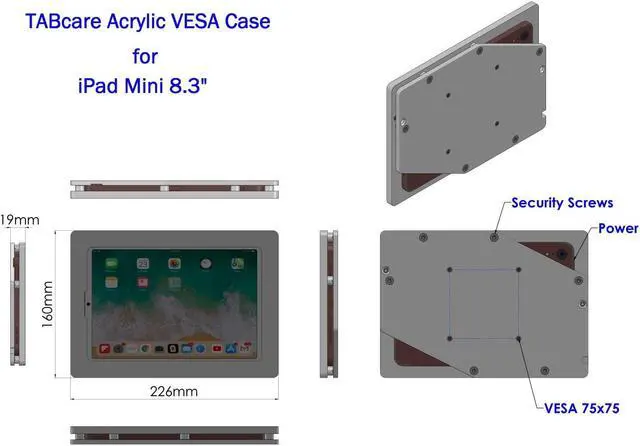Compatible with iPad mini 6 8.3" 2021, mini 7 2024, supports VESA 75x75mm Standard, fits Square CC Reader,. Easy Access to all Buttons and I/O ports, tablet can be charged while in use