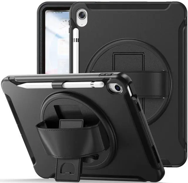 Sahara - Protection Hand Strap Series Case for iPad 11'' (A16) and iPad 10.9" (10th Gen), Black, (TB00278)