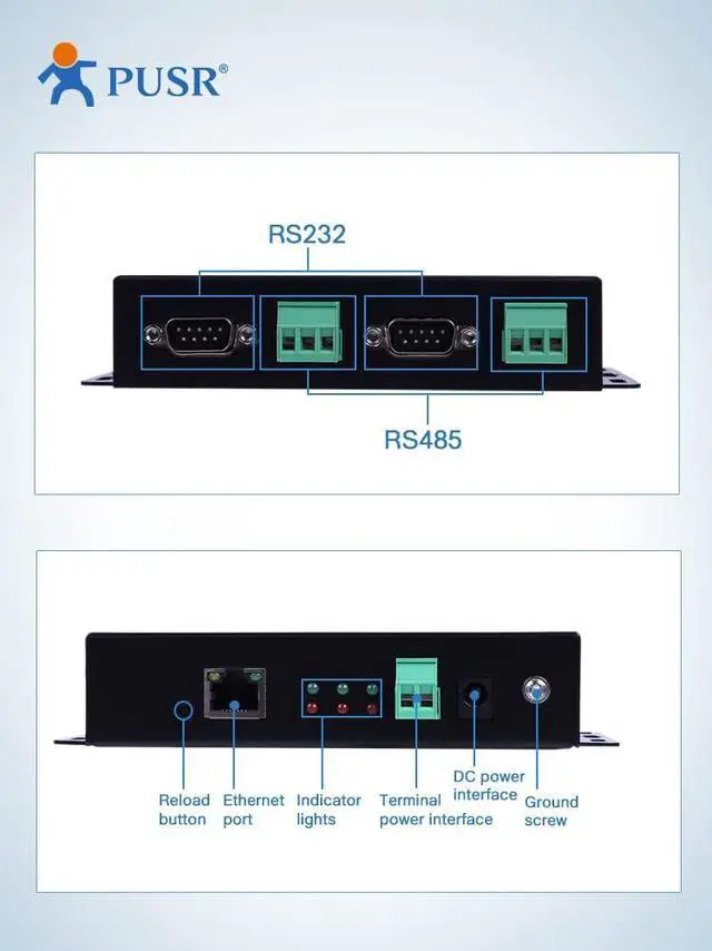 PUSR 2 Port Serial RS485 to Ethernet Converter Supports MQTT Modbus RTU to Modbus TCP USR-N520