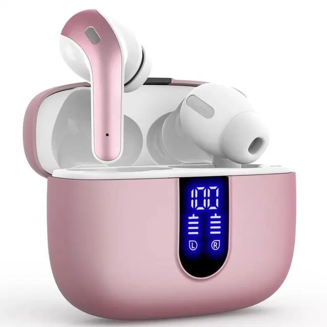 The True Wireless Earbuds Bluetooth Headphones offer an impressive 60 hours of playback time, ensuring that users can enjoy their music for extended periods without frequent recharging. Featuring an LED power display, these headphones provide a clear indication of the remaining battery life, helping users to manage their usage more effectively. The included wireless charging case adds convenience, allowing for easy recharging without the hassle of cables. Rated IPX5 waterproof, these in-ear earbuds are protected against sweat and splashes, making them ideal for sports and outdoor activities. With a built-in microphone, they facilitate clear and hands-free communication for calls and voice commands.