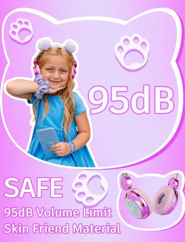 Safe:Function of 95dB volume limit and skin friend material ensure safe listening experience for kids