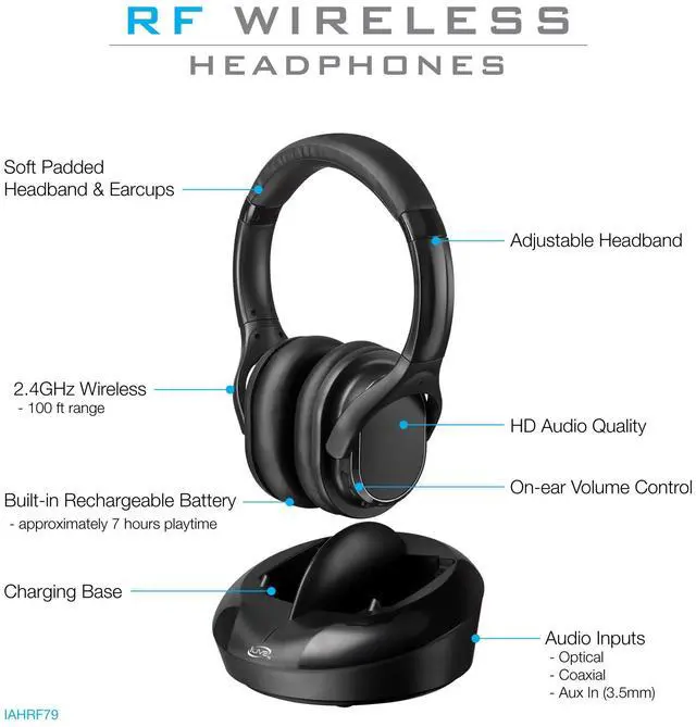 With an adjustable headband, plush, cushioned ear pads and true wireless freedom, you'll be comfortable enough for binge watching your favorite TV shows, movies and more for hours on end. An included docking station and transmitter make recharging easy so you never have to disturb your significant other, roommates, kids or neighbors. Easily connect to your system with the included cables (aux in, optical audio, aux in to RCA audio adapter) and enjoy listening privately to your entertainment.