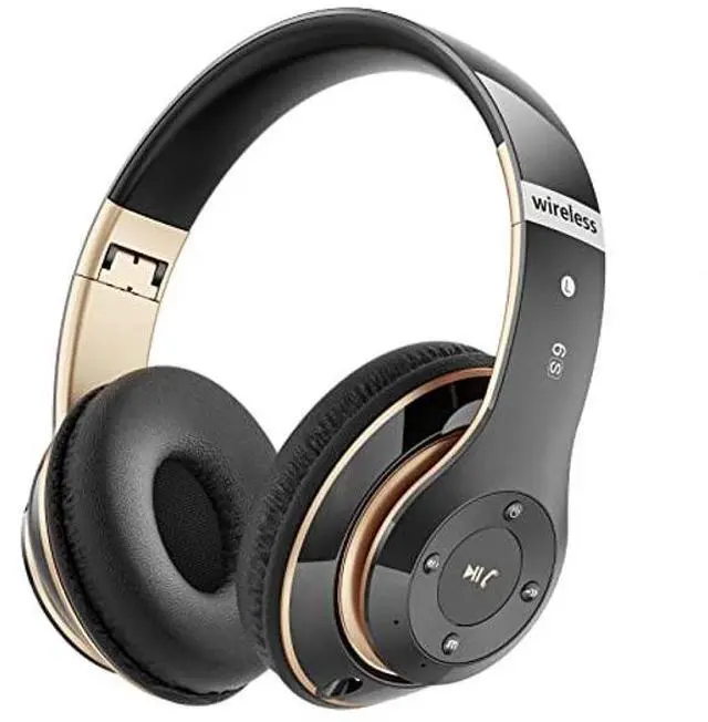 Falebare Bluetooth Headphones Over Ear, 6S Wireless Headphones Wired with 6 EQ Modes, 40 Hours Playtime Foldable HiFi Stereo Headset with Microphone, FM/TF for Cellphone/PC/Work (Black & Gold)