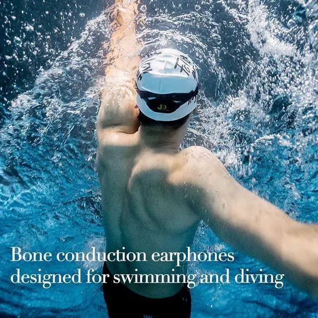 [(Innovative Wearing Methods)] Compared to the traditional swimming earphones, the wearing method of our earphone is very special. Just put our Unique Swimming Headphones at your head, then you can hear the music. No more worry about unstable wearing or falling off headphones when swimming or diving. Let our innovative bone conduction headphones save your trouble.