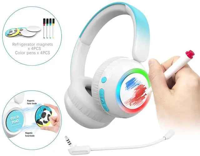 JBUNION Kids Bluetooth Headphones, Lightweight Wireless Headphones for Kids, 75/85/94dB Volume Limited, Detachable Microphone, Over-Ear Toddler Child Teens Headsets with 4 Color Pens