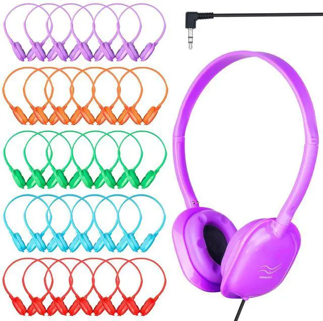 20 packs of 5 Colors Wired kids Headphones Bulk for Schools Classrooms Families