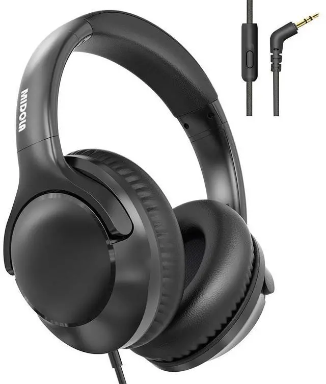 MIDOLA Wired Headphones Over-Ear Hi-Fi Sound with Microphone Adjustable Foldable, 1.5M Cord & 3.5 mm Jack, Lightweight Headset for Kids Adults PC iPad Laptop Black