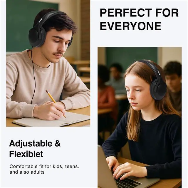 Super Comfortable for Ears: Ultra-soft ear cushions + adjustable headband ensure a snug, pain-free fit. Lightweight design keeps kids comfortable during long study sessions or playtime.