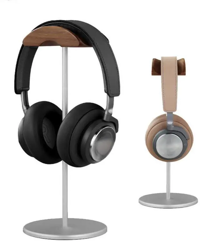 **Artistic Design**: This headphone stand, made of solid wood and aluminum, blends modern and classic styles, adding a touch of art to your space like a piece of artwork.