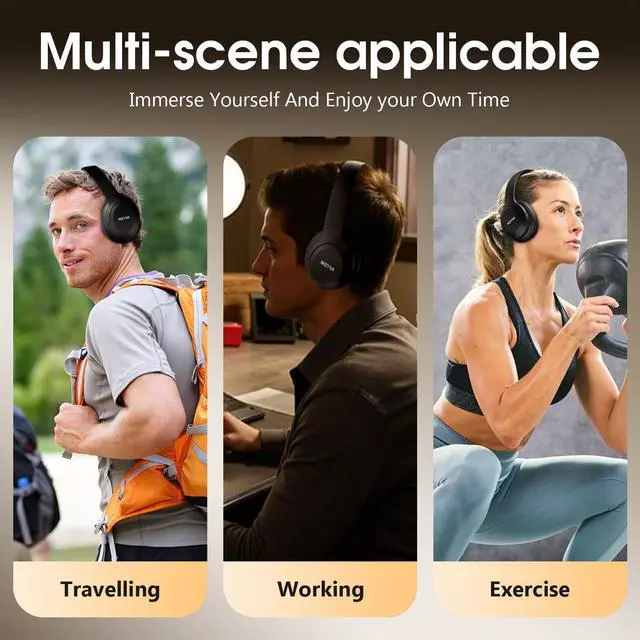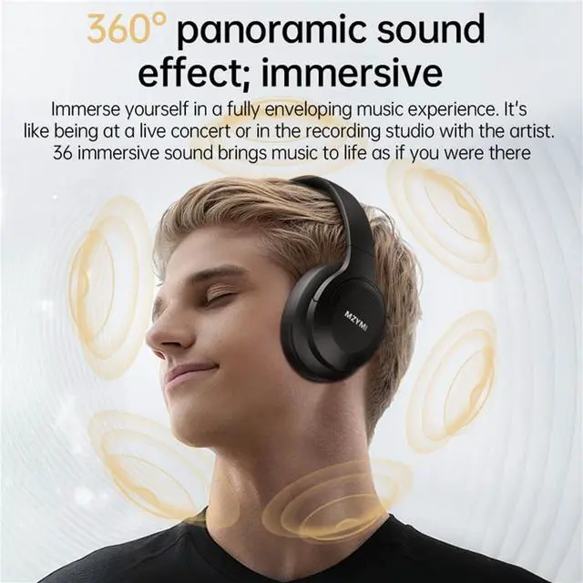 MZYMI Wireless Over Ear Bluetooth Headphones, 100H Playtime Active Noise Cancelling Headphone, Portable Foldable Bluetooth Headphone with Microphone for Work, Gym, Travel, Game, Black