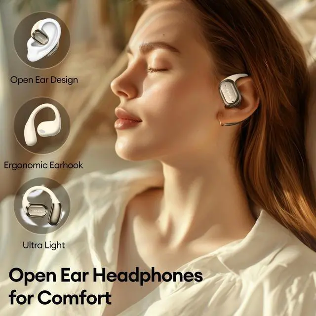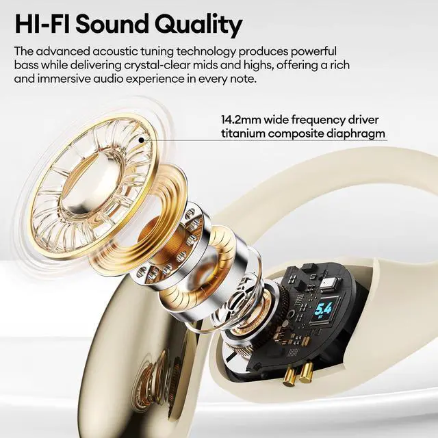 360deg Open-Air Acoustic Design: Designed with a zero-pressure airflow system, the bluetooth ear buds redefine wearing comfort with their feather-light titanium mesh ear cups. Unlike traditional ear buds, our Bionic Air Conduction 3.0 delivers music via micro-vibrations that "float" sound around your ear canal-preserving natural ambient awareness while maintaining concert-hall audio immersion