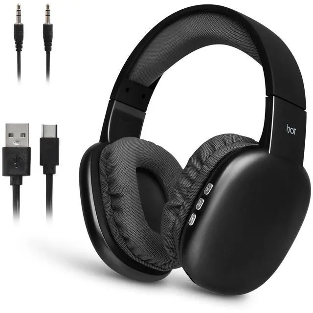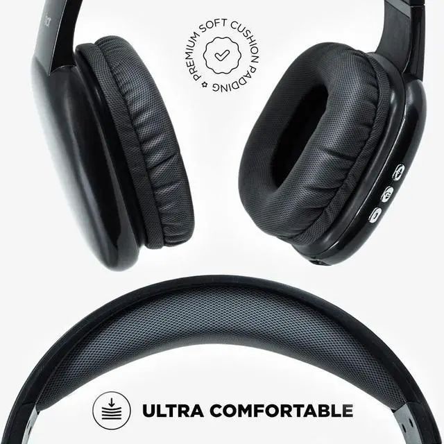 iJoy Ultra Wireless Headphones with Microphone- Rechargeable Over Ear Wireless Bluetooth Headphones with 10Hr Playtime, SD Slot, Backup Wire- Soft Cushion Wireless Headset with Mic (Black)