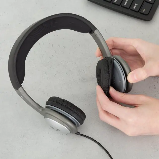 Cushioned Headband Stereo Headphones from Egghead let students listen to music and audio lessons in comfort. Plush ear cushions and a padded headband ensure student's ears won't get sore, especially during Common Core testing. Each ear cushion pivots to conform to the head shapes of different users.
