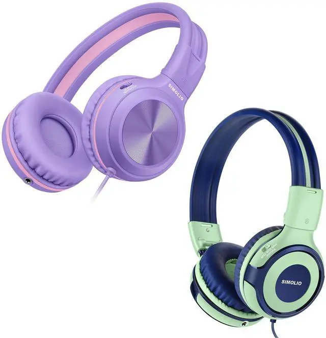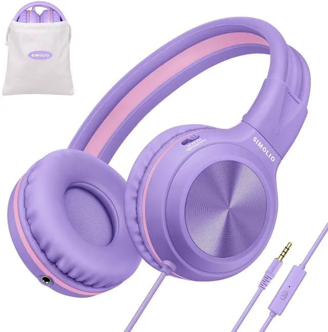 SIMOLIO Stereo Wired Headphones Teens Adult Kid Youth w/Mic & Volume Control & Volume Limited & Share Port & 3.5 mm Jack, Safe Volume Durable Foldable Headset for Online School Gaming PC Laptop Travel