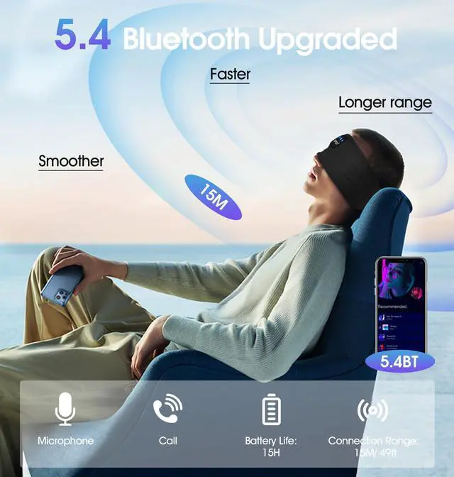 5.4 Bluetooth Headband: 3-in-1 Headband combines the functions of headphones, a sports headband, and a sleep headband, offering the perfect blend of art, technology, and everyday comfort. With lightning-fast connectivity, enjoy uninterrupted audio playback and a remarkable wireless range of up to 15 meters (49 ft). Plus, the built-in microphone allows for crystal-clear hands-free calls, keeping you connected wherever you go