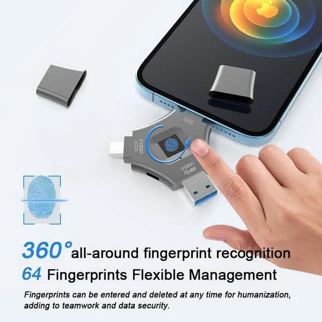 Suitable for iPhone USB 3.0 3-in-1 fingerprint encrypted drive, secure password protected USB disk encrypted storage Suitable for Android/iPhone/iPad/PC