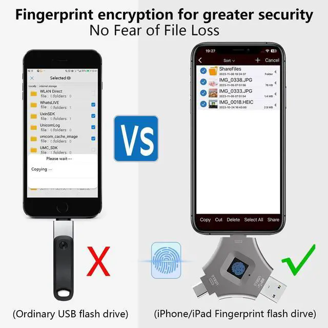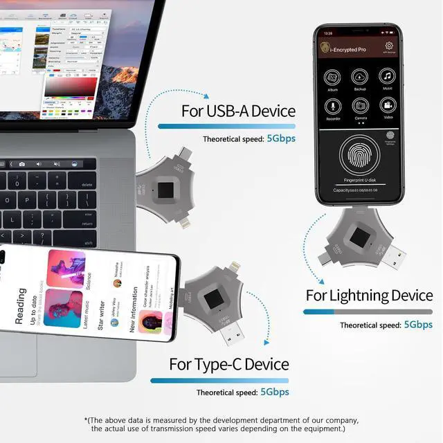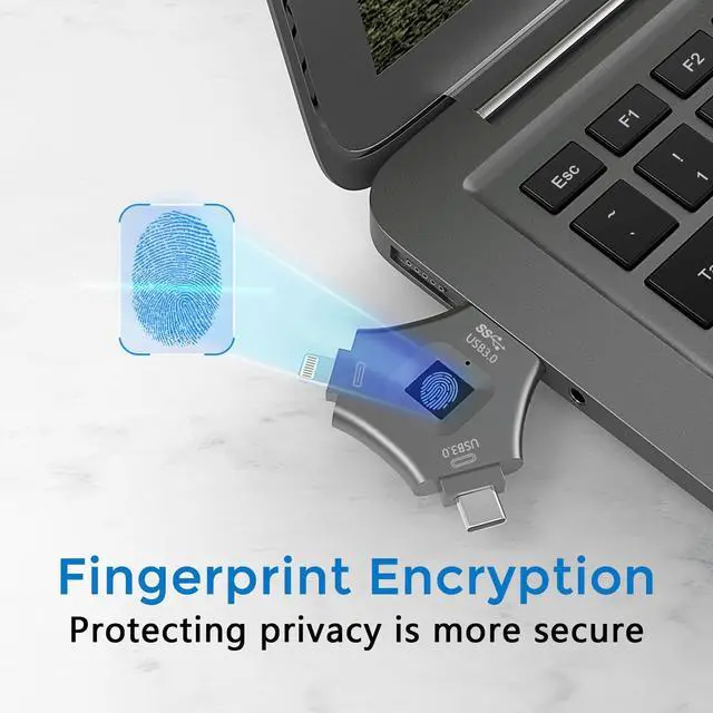 Gousido Suitable for iPhone USB3.0 3-in-1 Fingerprint encrypted Drive, Secure Password Protected USB Disk encrypted Storage Suitable for Android/iPhone/iPad/PC