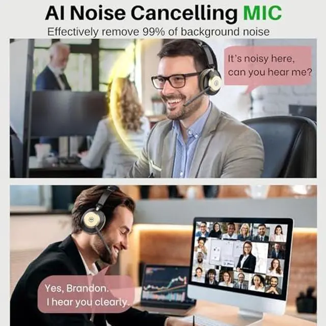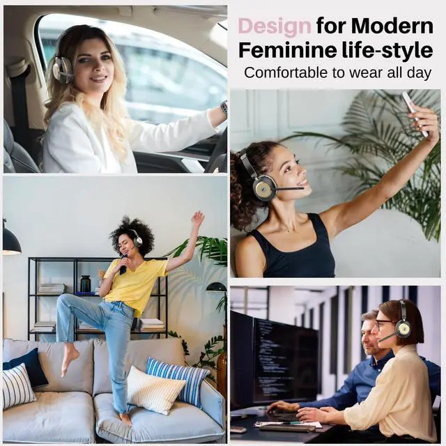 AI Noise Cancelling for Clear Calls This LUXEE wireless headset with Mic for work blocks 99.6 % of background noise, delivering professional-grade clarity. Whether in a busy airport, a lively co-working space, or taking calls while commuting, your voice stays crisp and clear. The one-touch mute function ensures instant privacy control, making the Bluetooth headset with Mic ideal for remote work, virtual meetings, and mobile professionals who need reliable, distraction-free communication anywhere (Audifonos inalambricos con microfono! ) ^^ Dual Connectivity Options for Flexibility The wireless headset with mic for work offers two seamless connection methods: Bluetooth 5.3 & USB dongle. Easily connect to laptops, mobile phones, and other Bluetooth devices. If your desktop lacks Bluetooth, simply use the wireless headphones with mic included USB adapter for a stable connection (only one device can be connected at a time). With a wireless range of up to 49 feet, you have freedom to move around without sacrificing sound quality. ^^ Crystal Clear Sound for Work & Play Experience Immersive stereo sound while making calls and stunning audio with the bluetooth headphones with Mic. It provides superior sound for both professional calls and leisure activities. Enjoy seamless compatibility with platforms like Zoom, Microsoft Teams, WebEx, and Skype. Whether you're in a meeting or relaxing with music, this Bluetooth headset with microphone delivers exceptional sound quality for every moment. ^^ Comfortable Over-Ear/On-Ear Design Lightweight and ergonomically designed for all-day comfort. The 270 rotatable mic offers flexibility to wear on either side, while the wireless headphones with mic adjustable headband reduce pressure on your ears and head. Ideal for all head sizes, also prevents hair tangling, making it perfect for those with long hair.
