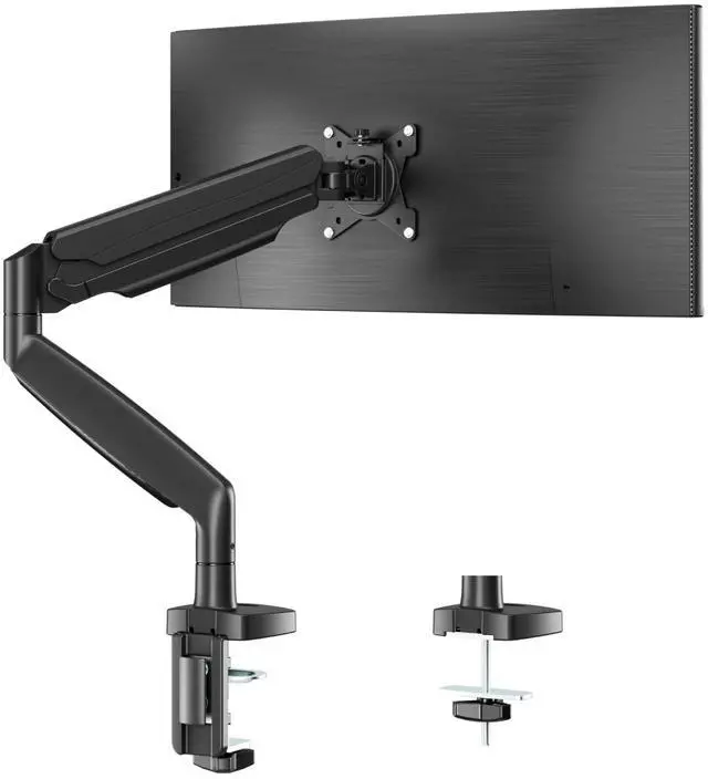 Great CompatibilityThe single monitor mount fits 13-35 inch LED/OLED/QLED flat or curved computer screens, holds weight up to 30.8 lbs., suitable for VESA patterns of 75x75mm & 100x100mm. Our monitor mount is specially designed for ergonomics, aiming to help people work play and watch comfortably. ^^ Fully AdjustableThe ultrawide monitor mount can be flexibly adjusted to support -45to +90tilt, 180swivel, 360rotation and height adjustment. Freely set the perfect viewing angle for each monitor whether it's work, or gaming. ^^ Upgrade Gas Spring ArmThe monitor desk mount has a built-in gas spring system which has been tested over 25, 000 exercise tests, which means means it is stable.