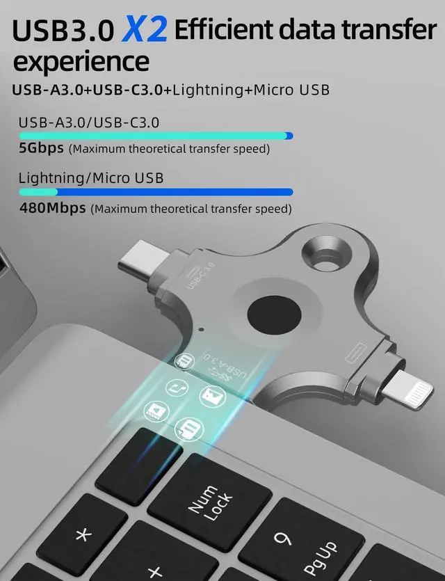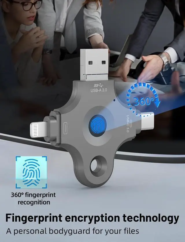 USB 3.0 4-in-1 fingerprint encrypted USB flash drive for iPhone USB Memory Stick Thumb Drives High Speed USB Stick, Photo Stick External Storage for iPhone/iPad/Android/PC