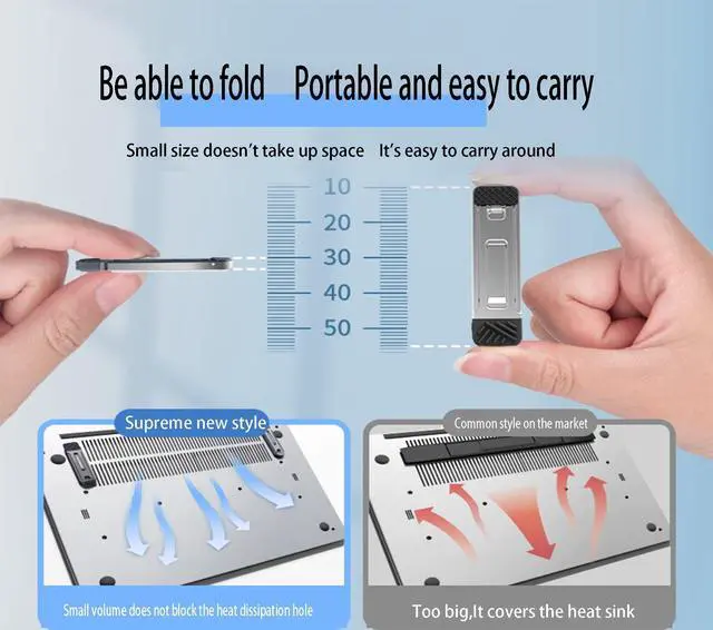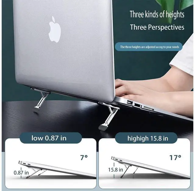 Physical heat dissipation: This small laptop stand is made of aluminum alloy material, which acts as a heat pad to help your laptop cool down. The forward sloped Angle and open design provides good ventilation and airflow, preventing your laptop from overheating ^^ [Portable