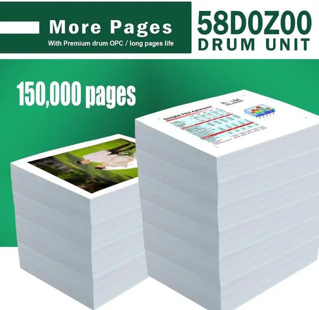 High Page Yield: 150, 000 pages per cartridge at 5% coverage 58D0Z00 black drum Imaging unit on Letter/A4; ^^
