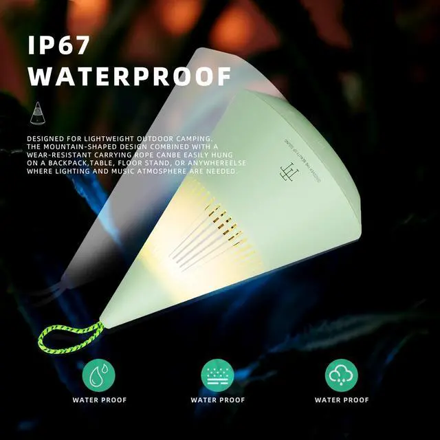 360 Immersive Sound & TWS Stereo PairingExperience true surround sound with a hidden 360 acoustic design and TWS (True Wireless Stereo) pairingconnect two speakers for left-right stereo channels and double the audio impact. Perfect for camping, parties, home use, and more. ^^ High-Fidelity Audio with Deep BassEquipped with a 1.75 -inch full-range driver, custom metal passive radiator, and Bluetooth 5.3 for stable connectivity. Delivers powerful bass (down to 80Hz), >92dB max SPL, and <10% distortioncrystal-clear sound even in noisy outdoor settings. ^^ Multi-Functional Camping LampFeatures a 300-lumen adjustable mood light with 3 brightness levels, SOS/emergency mode, and flicker-free illumination.