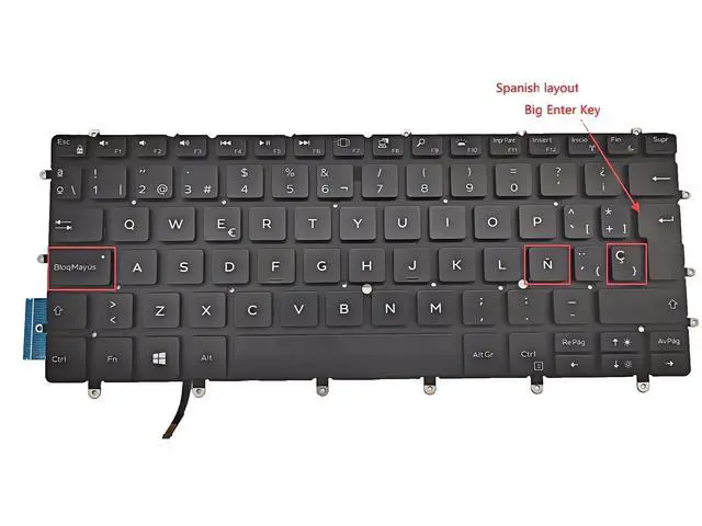 NEW Latin Spanish layout For Dell XPS 13 9305 9370 9380 7390 with Backlit--------without frame--------- Big enter key- (Can not fit small enter key version) ----------Spanish layout---------- Backlit.