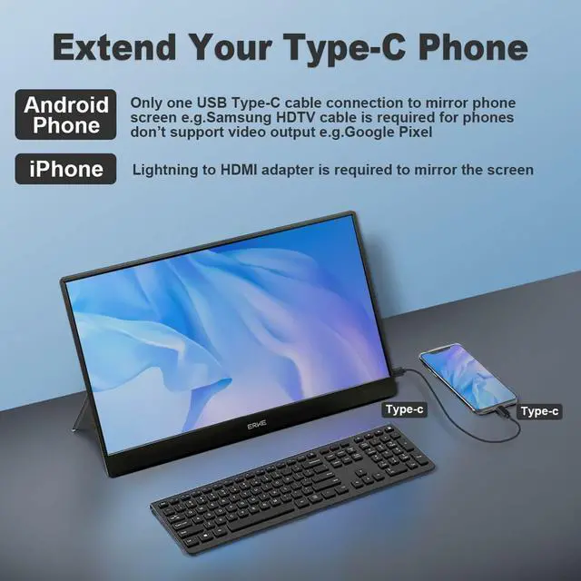 Wide CompatibilityPortable extra computer monitor provide two signal input ways: USB C or Mini HDMI.It can compatible with most of Laptops, USB C Smartphones, XBOX, PS5/4/3, Switch,mini pc, Raspberry Pi, digital camera etc.Meet your needs anytime, anywhere.