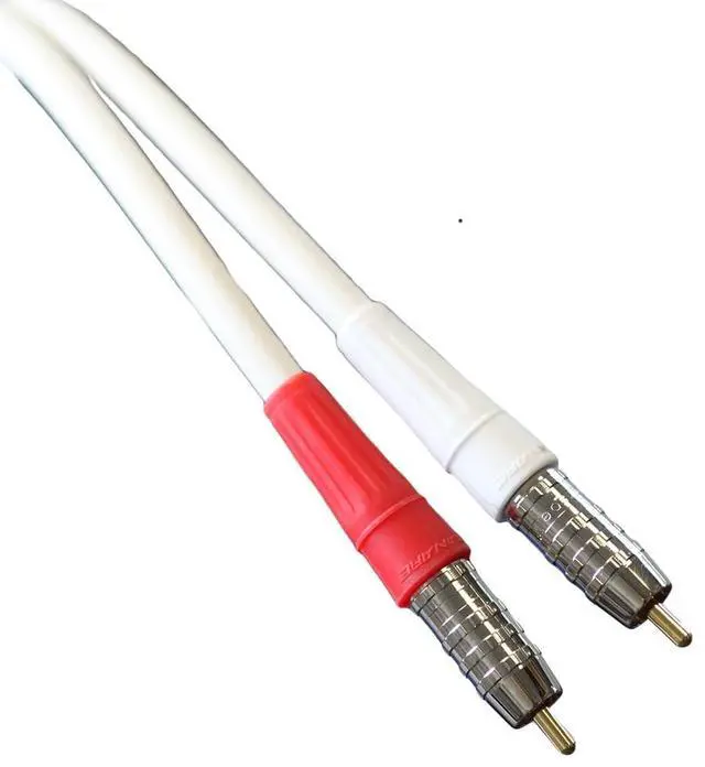 Blue Jeans Cables LC-2 Analog Audio Cable is optimized for the needs of unbalanced (RCA) audio interconnection. In unbalanced audio, noise rejection is primarily a function of shield effectiveness at audio frequencies LC-2 has not one but two high-coverage copper braid shields, laid one on top of the other, providing high coverage, excellent audio-frequency shield performance, and low resistance to ground at both ends. With its small center conductor and large foamed dielectric, LC-2 also provides low capacitance about 12 pF/foot to limit high-frequency rolloff. These cables carry our Taversoe RCA plug, a brass-bodied design with gold-plated contact surfaces and a leaf-spring ground contact for firm engagement with the jack.
