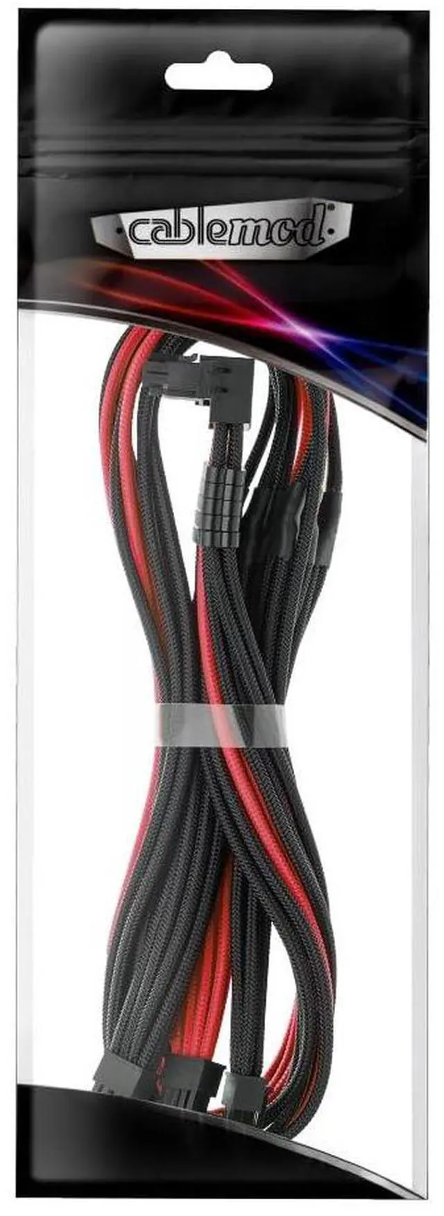 CableMod C-Series Pro ModMesh Sleeved 12V-2x6 12VHPWR 90deg StealthSense PCIe Cable for Corsair Type 5 RMX Shift - Variant A (Black + Red, 90deg 16-pin to Triple 8-pin, 65cm)