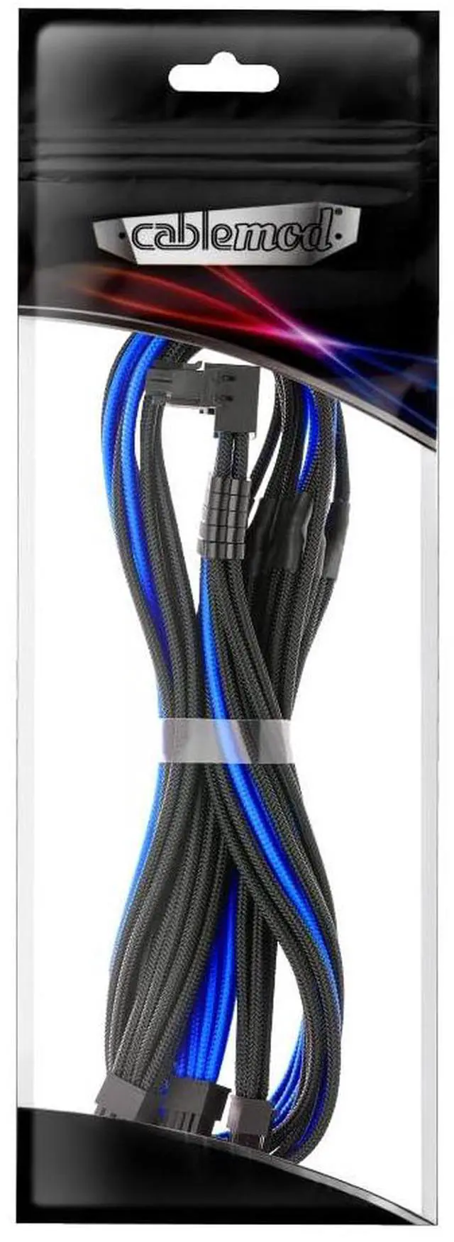 CableMod C-Series Pro ModMesh Sleeved 12V-2x6 12VHPWR 90° StealthSense PCIe Cable for Corsair Type 5 RMX Shift - Variant A (Black + Blue, 90° 16-pin to Triple 8-pin, 65cm)