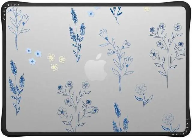 CASETiFY Impact MacBook Air 13-inch (M2-M4) Case [Enhanced Protective Corner Design/Ventilation Cutouts/Anti-Slip Grip] - Small Blue Flowers - Clear Black