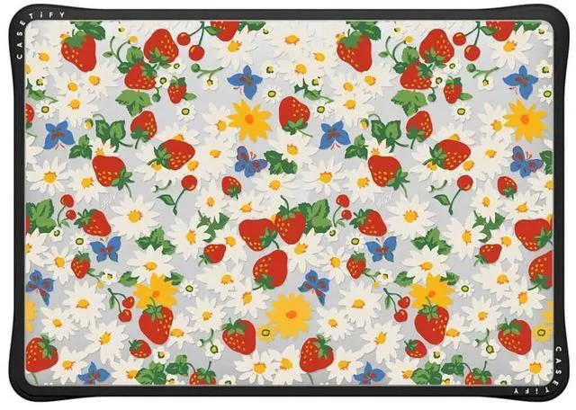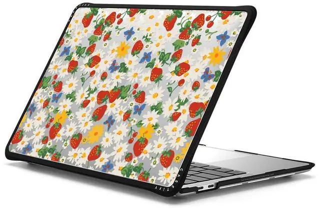 CASETiFY Impact MacBookPro 13" (M1/M2/Intel) Case [Cushioned Impact Corners/Scratch-Resistant/Anti-Slip Grip] - Strawberry Daisy - Clear Black