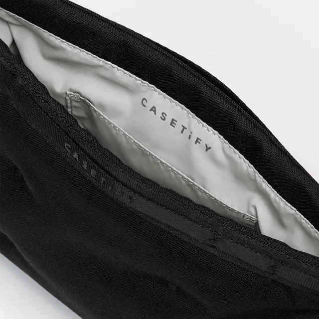 Plush padding. This product does not include a strap. ^^ Seamless magnetic closure ^^ All-around webbing loops to attach accessories ^^ Water-resistant fabric with DWR coating ^^ Internal slip pocket for convenient storage ( 10.04 x 1.97 inch)