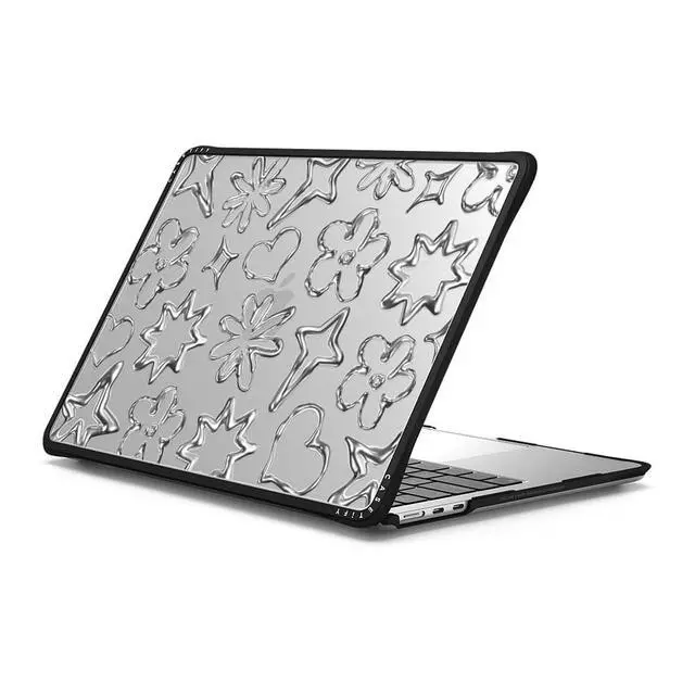 CASETiFY Impact MacBook Air 13.6" (M2-M4) Case [Cushioned Impact Corners/Scratch-Resistant/Anti-Slip Grip] - Chrome Doodles - Clear Black