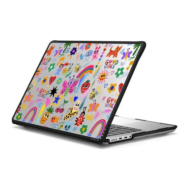 CASETiFY Impact MacBook Pro 14" (M1-M5) Case [Cushioned Impact Corners/Scratch-Resistant/Anti-Slip Grip] - Good Vibes - Clear Black