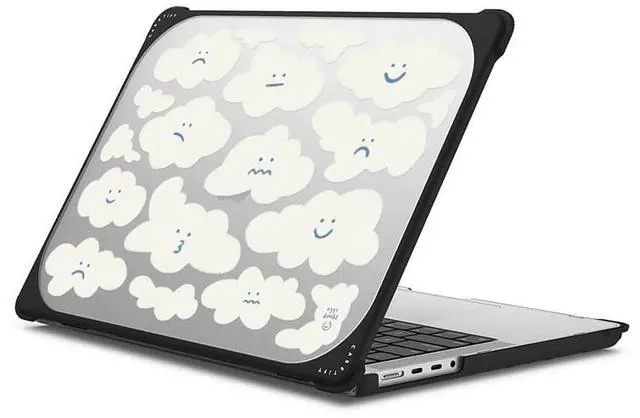 CASETiFY Bounce MacBook Pro 16-inch (M1-M5) Case [Enhanced Protective Corner Design/Ventilation Cutouts/Anti-Slip Grip] - Cute Clouds by Eggsdoodz - Clear Black