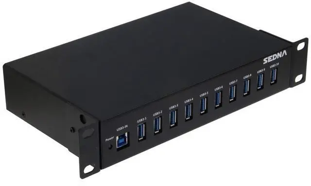 OSpackage content: 1 x 10 Port 10 inch 1U USB 3.0 Hub1 x Switching type Power Adapter ( 5V 4A) USB 3.0 Cable2 x Server Cabinet Mounting Bracket4 x Mounting screws