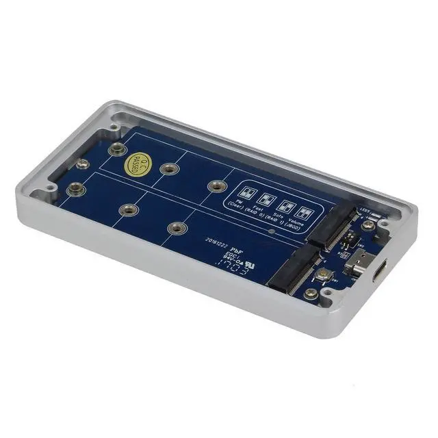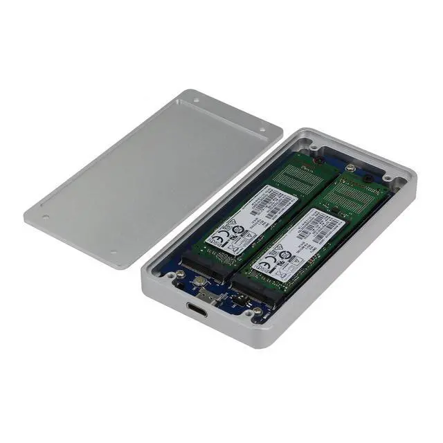 Features: USB 3.1 Gen II (10Gbps, Type C) transfer rateSupports Dual M2 NGFF (SATA 6G) SSD, tiny and slim (SSD not included) Up to 10Gbps data transfer rate ideal for portable applicationCompliant with the Universal Serial Bus 3.1 and USB 3.0RAID