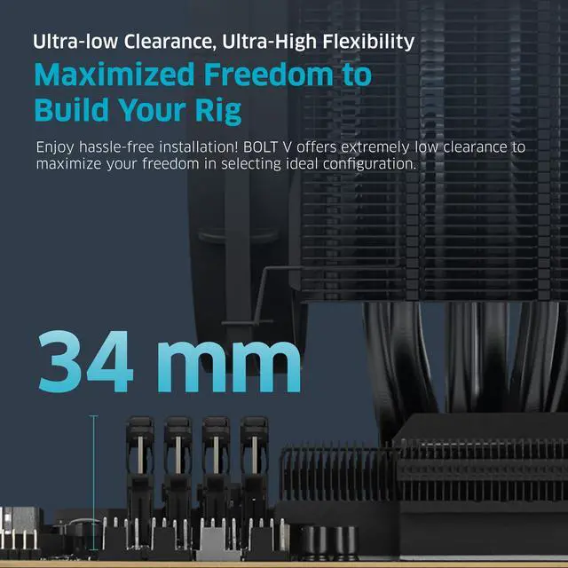 Powerful Aluminum Heatsink: Designed with decent simplified style while utilizing mighty aluminum metal, the modern BOLT V is not only meticulous in design but efficient in heat dissipation! ^^ Ultra-low Clearance, Ultra-High Flexibility, Maximized Freedom to