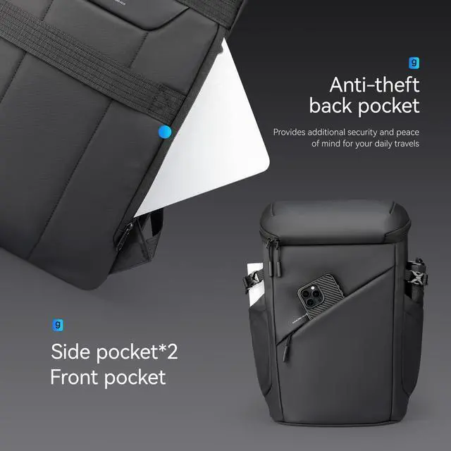 Dual USB & USB-C Ports Stay powered on the move. Charge your devices easily with built-in USB and USB-C ports. (Power bank not included. ) ^^ Water-Resistant & Durable Build Made from premium Oxford fabric with PU leather trim, offering both professional style and reliable protection in light rain. ^^ Fits 14" Laptop Perfectly A padded compartment is tailored for 14-inch laptops or tablets, offering a snug, secure fit for everyday commuting and business use. ^^ Smooth YKK Zippers & Hidden Pocket Reliable YKK zippers ensure smooth access, while a rear anti-theft pocket keeps your valuables safe on the go.