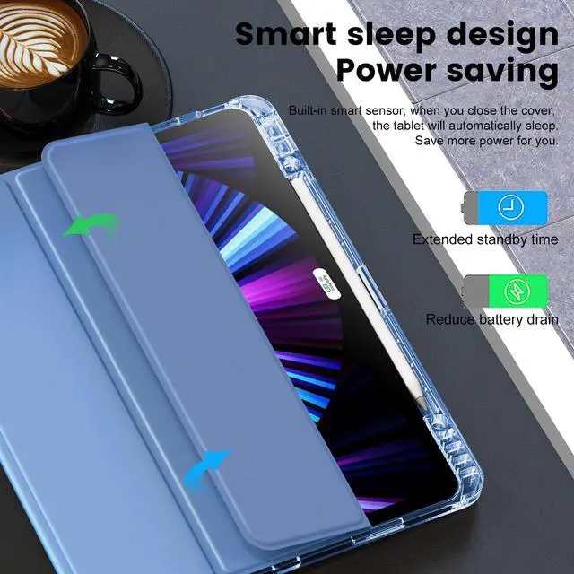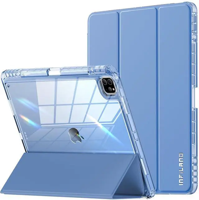 INFILAND Compatible with iPad Pro 12.9 Case 2022/2021(6th/5th Gen), [Crystal Clear Both Back & Frame] Anti-Yellowing + Pencil Holder (A2378, A2461, A2379, A2462, A2436, A2764, A2437, A2766) Blue