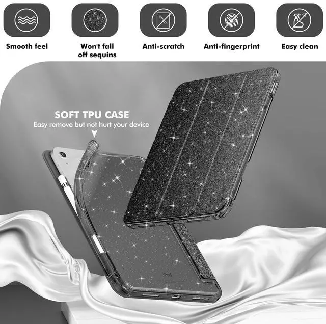 • Sparkle Glitter Clear: Combine of glitter sparkly leather cover and bling crystal clear shiny back case, this iPad case 11th generation focus on emphasizing the beauty of your iPad while having a sense of individuality, especially for fashion girls, woman or cute kids.