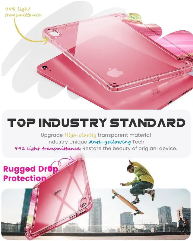 Restore True Beauty of the iPad: Applying German Bayer HD transparent material to produce this iPad a 16 clear case cover, it realizes true whole body clear from frame to back, displaying your iPad Case 10th Generation with more than 99% light transmittance from all-around and showing the Apple logo clearly