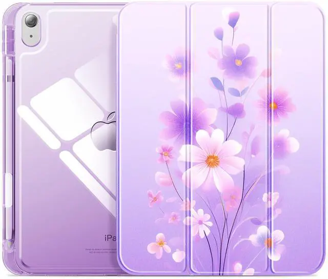 INFILAND Compatible with iPad A16 Case 11th Generation 11 Inch 2025, iPad 10th Generation Case 10.9 Inch 2022, Clear Slim Protective Cover with Apple Pencil Holder & Charging Adapter (Amethyst Petals)