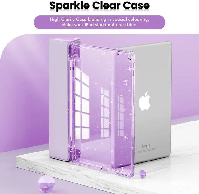 INFILAND for iPad 9th Generation 2021/ iPad 8th Generation 2020/ iPad 7th Generation 2019 Case 10.2 inch, Glitter Cover with Clear Back, Pencil Holder for Kids Girls
